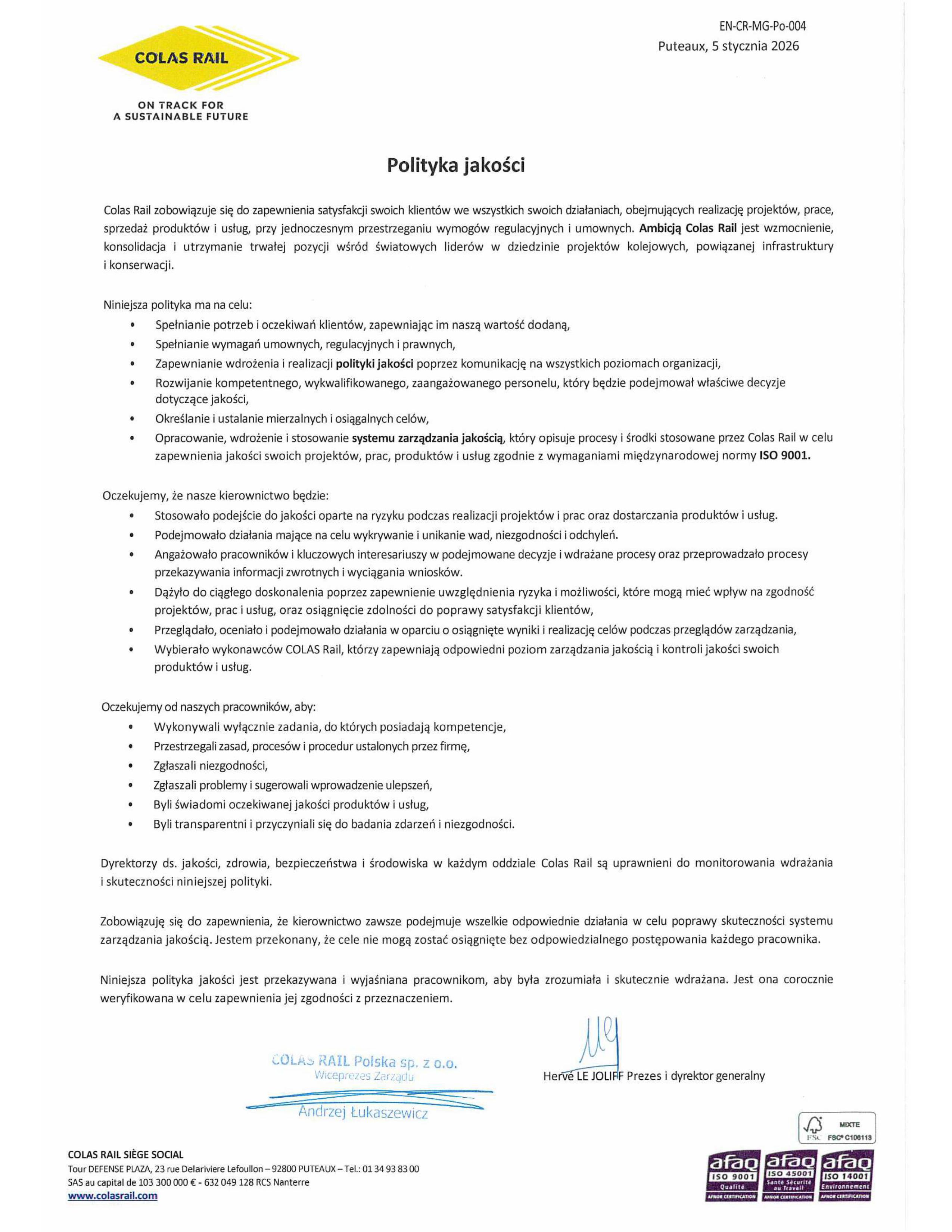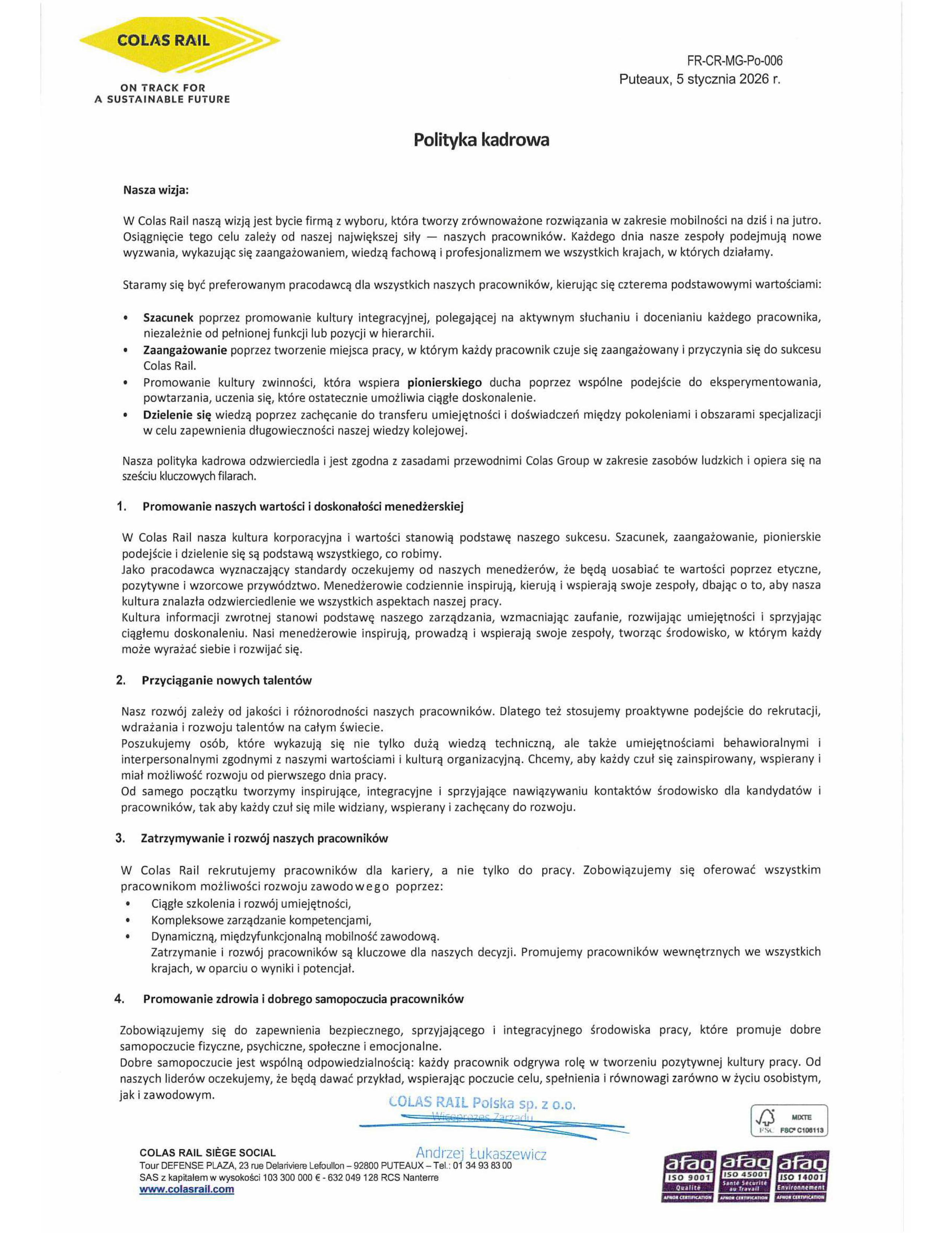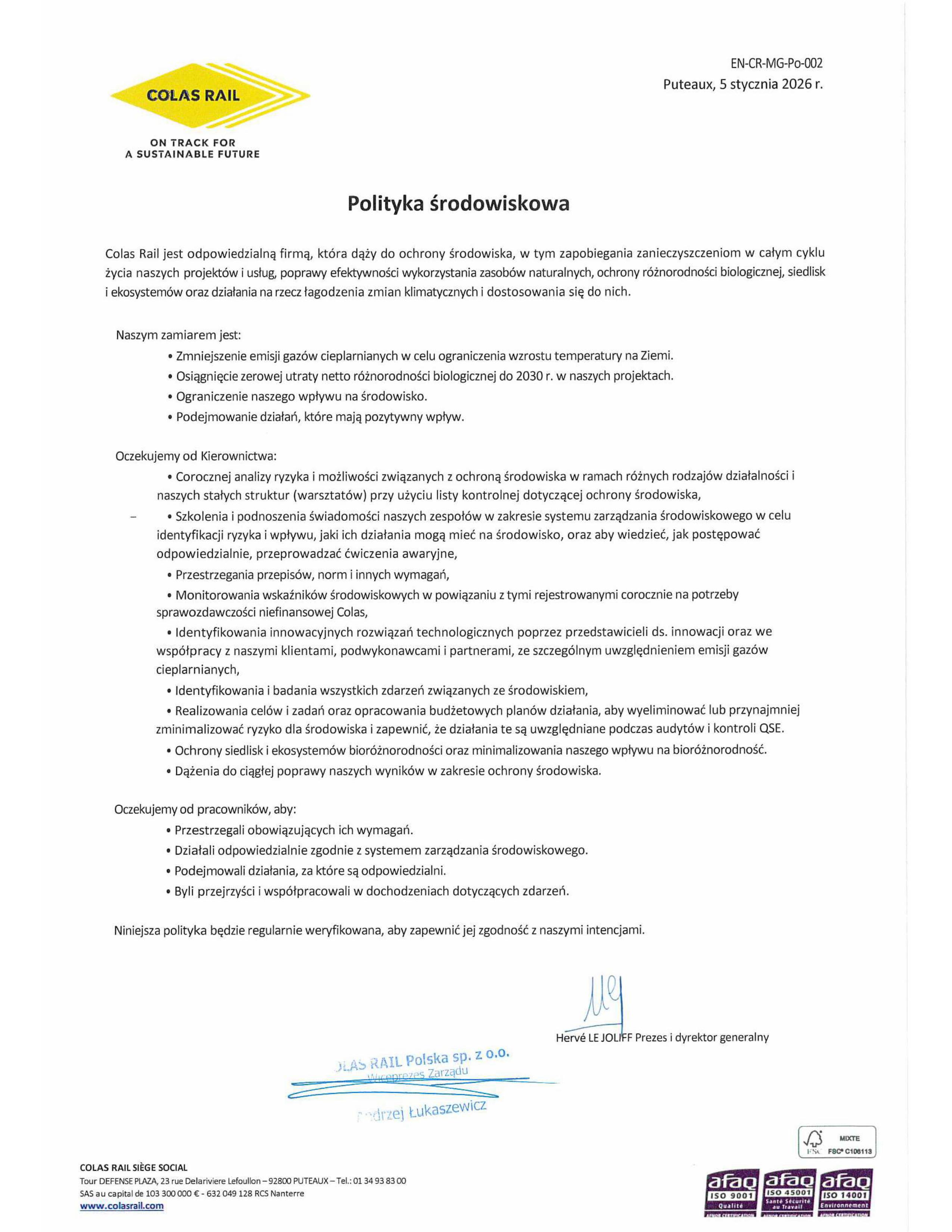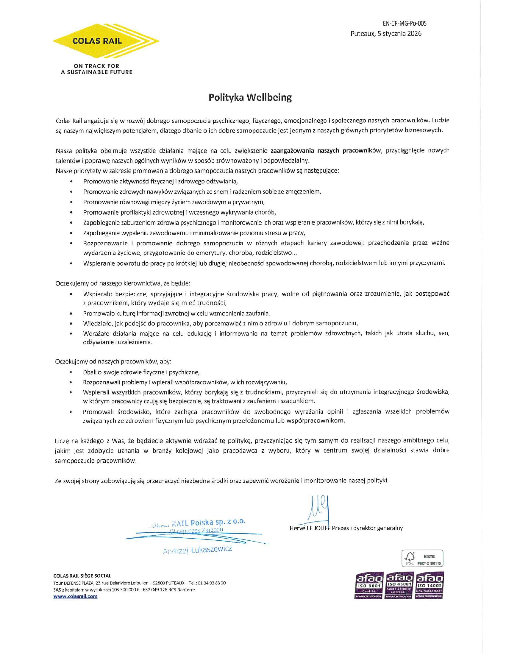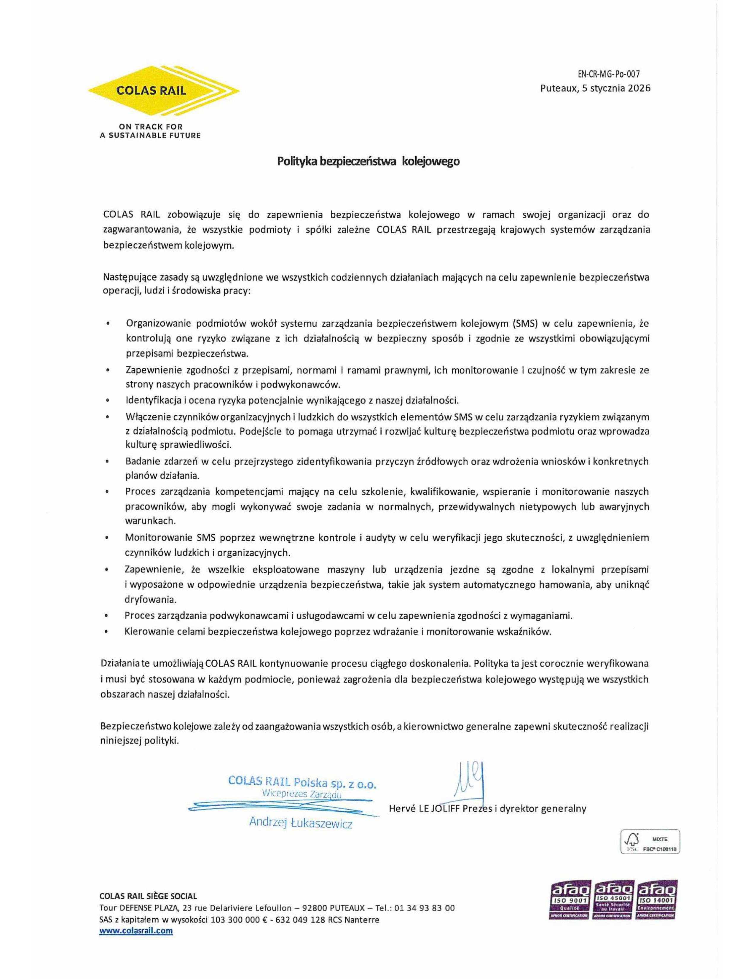 Dla Colas Rail Polska zapewnienie bezpieczeństwa jest najwyższym priorytetem. Stale podnosimy poprzeczkę zaangażowania w BHP oraz ochronę środowiska. Dbamy, aby kultura bezpieczeństwa była naszą wizytówką.